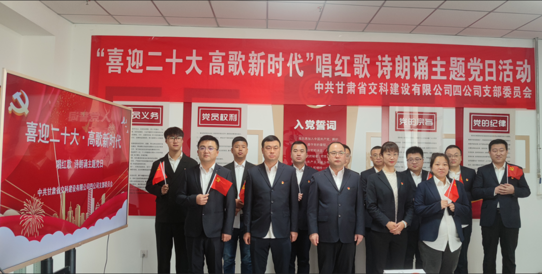 <meta name="description" content="金秋十月，伟大的中国共产党即将迎来第二十次全国代表大会，为营造喜庆、热烈、昂扬、振奋的浓厚氛围，交科公司四公司党支部于10月9日组织开展了“喜迎二十大高歌新时代”唱红歌、诗朗诵主题党日活动。以红歌献唱" />