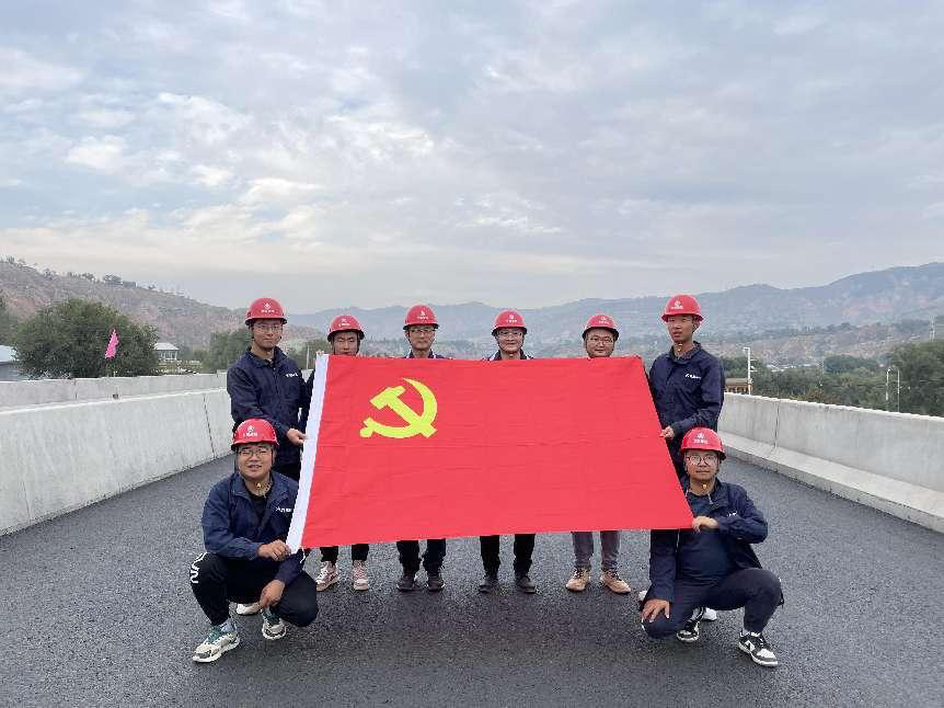 在党的二十大召开之际,四公司临夏市环城北路建设工程四区项目部职工集体与党旗合影。面对鲜红的党旗,他们态度坚定、慷慨激昂地说:党的旗帜永远飘扬在空中,为我们指引着前进道路。我们永远跟党走,因党的光辉历史;我们永远跟党走,因党的杰出贡献!中国,有了共产党,才有了坚定的希望信念,才有了今天的繁荣富强。我们坚信,在过去101年赢得了伟大胜利和荣光的中国共产党和中国人民,必将在新时代新征程上赢得更加伟大的胜利和荣光!我们会继续埋头苦干、勇毅前行,以实际行动迎接党的二十大胜利召开!