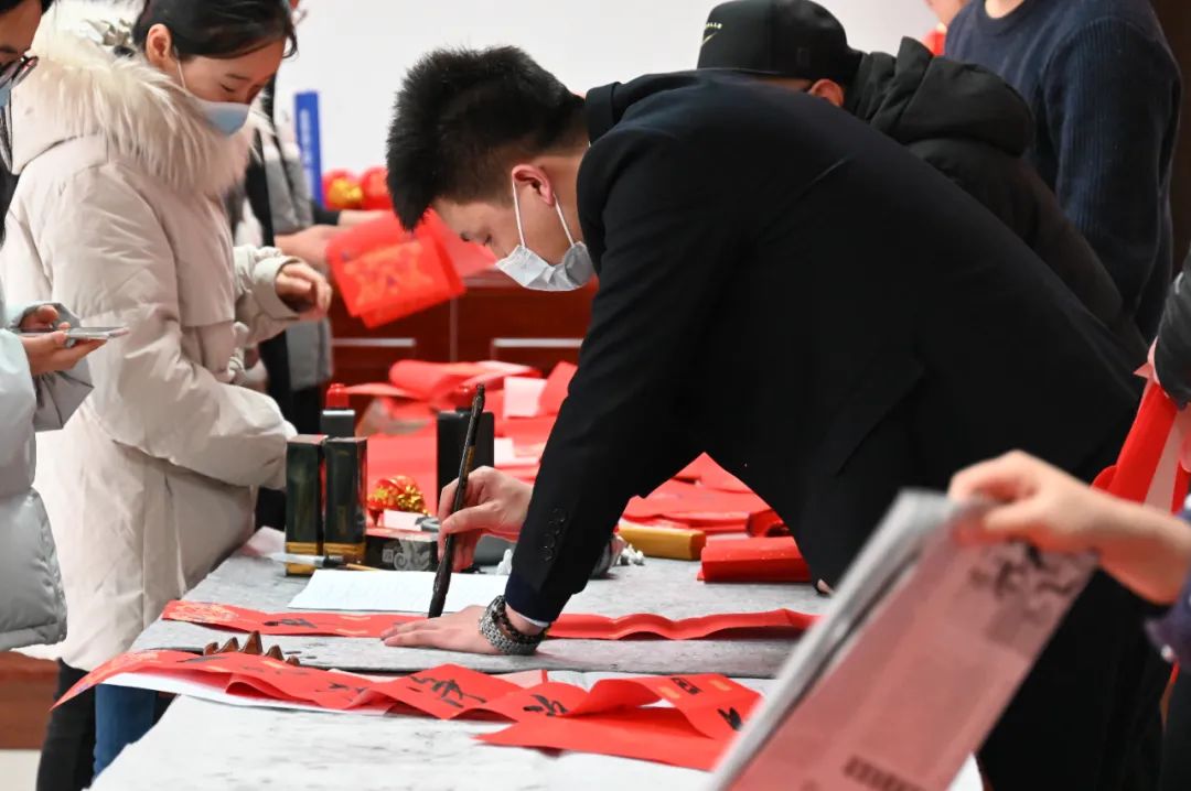 “月里嫦娥舒袖舞,人间玉兔报春来”“金虎归山辞旧去,玉兔下凡迎春来”……活动现场,交科公司书法爱好者抻纸、蘸墨、落笔,起承转合之间,将带着辞旧迎新的美好祝愿,化作一张张寓意吉祥的书法作品显在“中国红”纸上。行、楷、隶、篆等不同书体不同风格的春联,字体潇洒飘逸,尽显神韵,吸引了不少职工前来欣赏,他们兴致勃勃地挑“福”字、选春联,脸上洋溢着幸福的欢笑,同时感受到了“娘家人”的关怀。