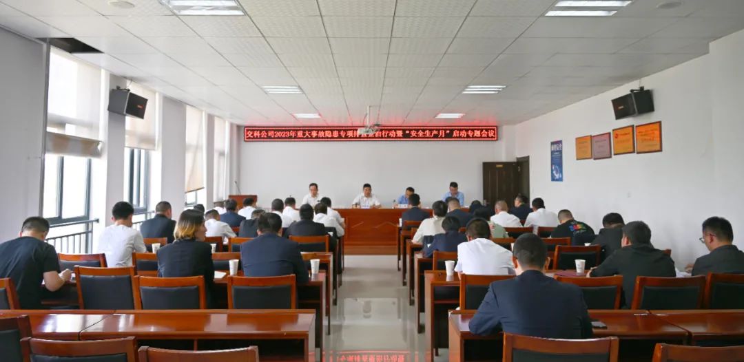 5月29日,交科公司召开2023年重大事故隐患专项排查整治行动暨“安全生产月”启动专题会议。公司领导班子,机关各部室负责人,各基层公司经理、生产副经理、安质科负责人,安质部全体成员,在兰项目经理参加会议。会议由公司副总经理吴钢主持。
