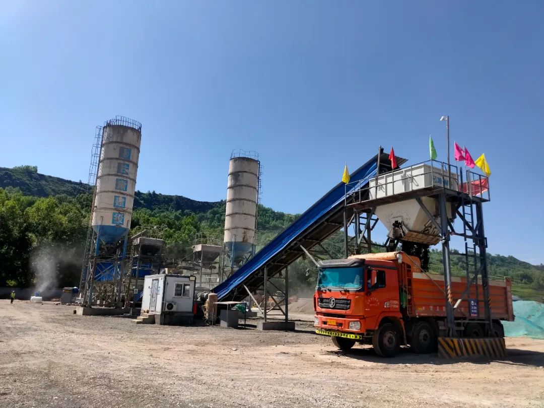 烈日炎炎,骄阳似火,路政公司和政水稳拌合站一片繁忙景象。随着装载机、混凝土运输车等机械的轰鸣,一车车摊铺料按时足量运送至施工现场,保障摊铺作业有序进行。