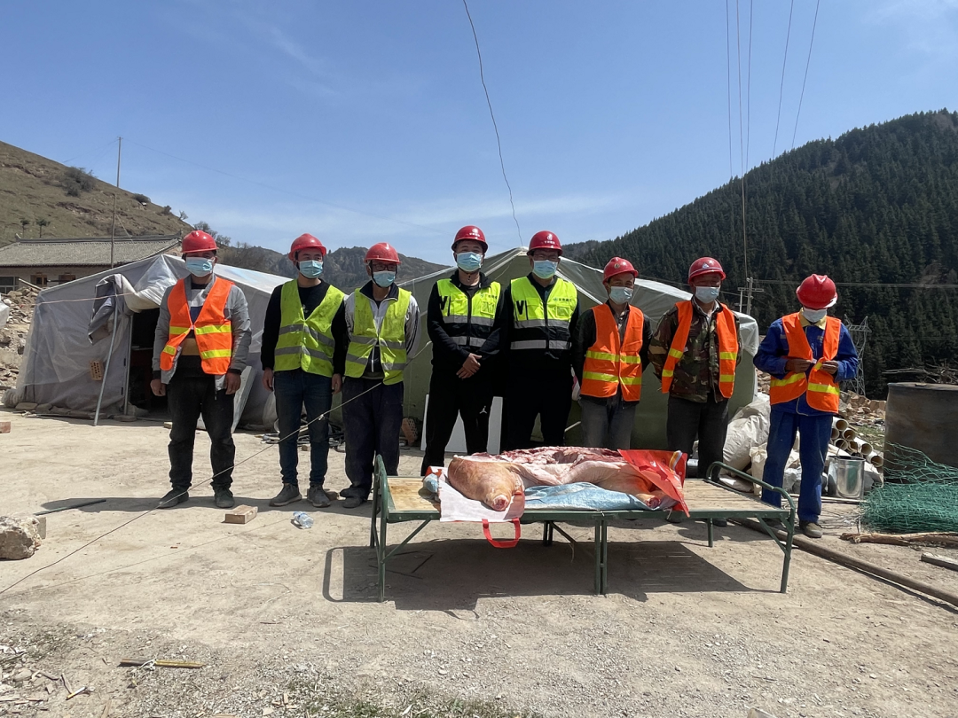 <meta name="description" content="漳县大草滩镇北沟寺产业路项目“隧道公司慰问我们一线劳动者，给我们发放了药品和猪肉，让我们倍感暖心，在接下来的施工任务中，我们一定做好个人防护，认真做好安全工作。”挡墙施工工人李启宏在领取慰问品时说。在" />