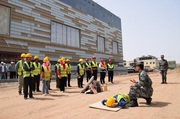 甘肃军创培训中心培训人员在项目现场开展消防知识宣传,向项目一线人员普及安全消防知识,从火灾隐患自查、初起火灾自救、组织人员疏散、消防安全“四个能力”方面详细讲解了如何防范、预防火灾事故,详细介绍消防防护装备的作用,现场演示消防器材、防毒面罩等消防救援器材的使用方法。