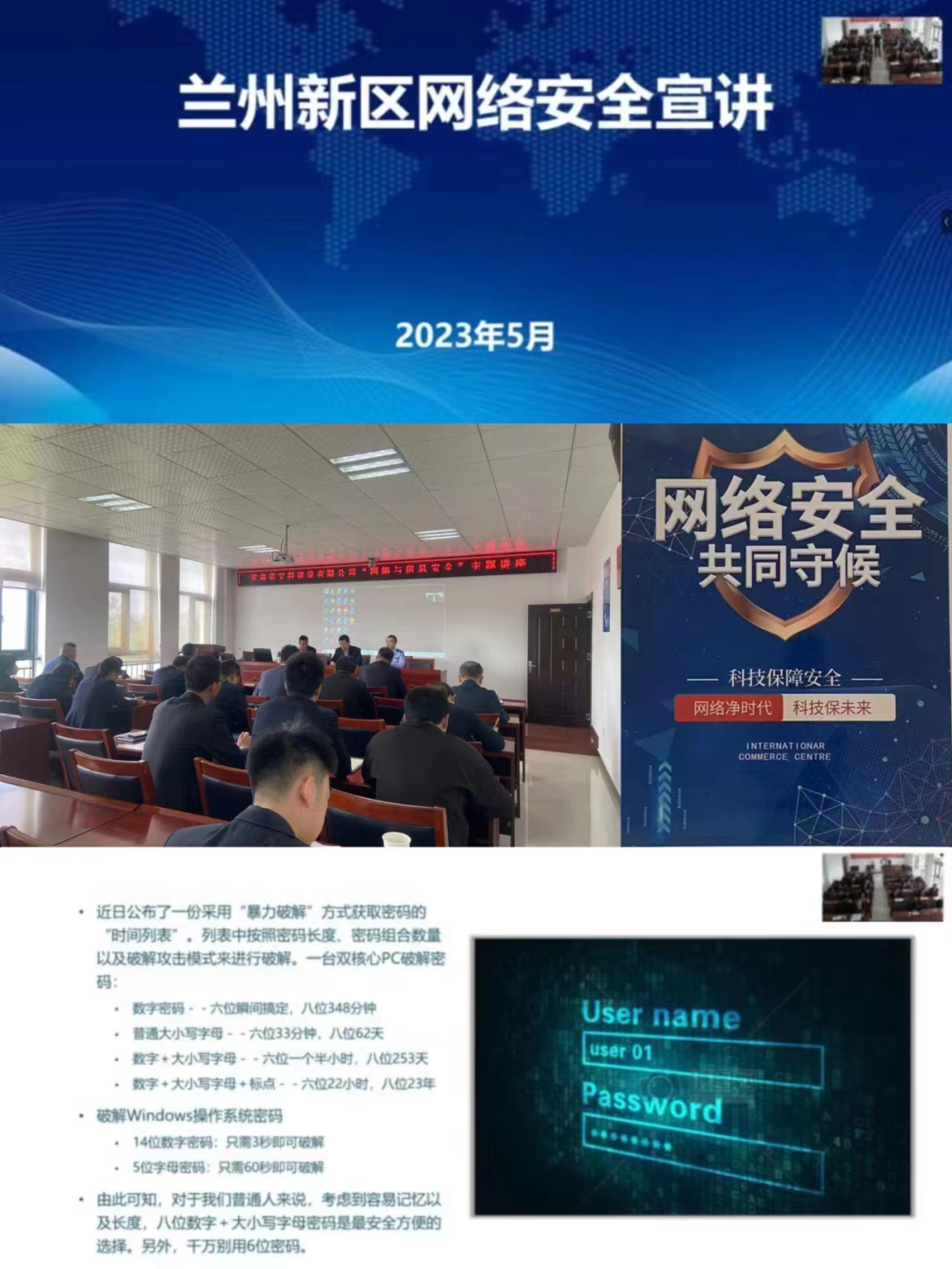 <meta name="description" content="为深入贯彻落实党的二十大精神，推动实施《提升全民数字素养与技能行动纲要》，5月22日上午，交科公司技术中心与兰州新区公安局网安大队联合举办了网络与信息安全讲座。此次讲座以“共筑网络安全，守护绿色家园”" />