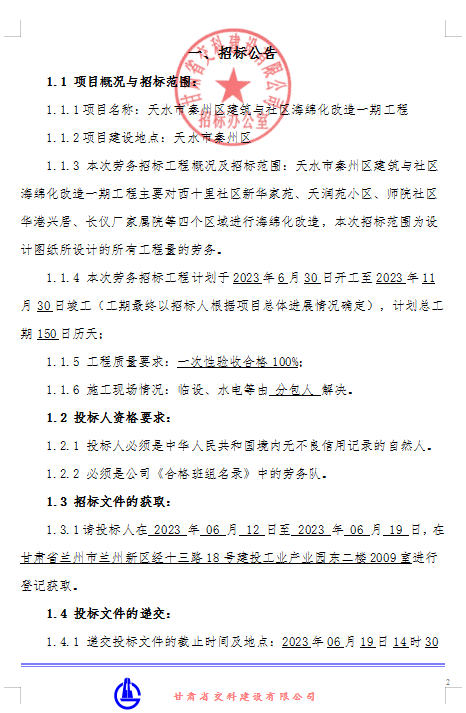 天水市秦州区建筑与社区海绵化改造一期工程-劳务招标公告